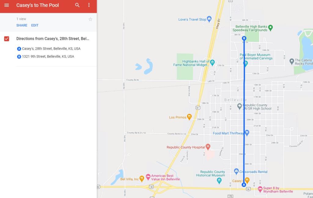 With this route, you will ride through Belleville to visit The Pool in City Park. You can even stop in the downtown area for a quick snack or some shopping. Just lock the bike to any secure object once you stop or any bike rack within walking distance.