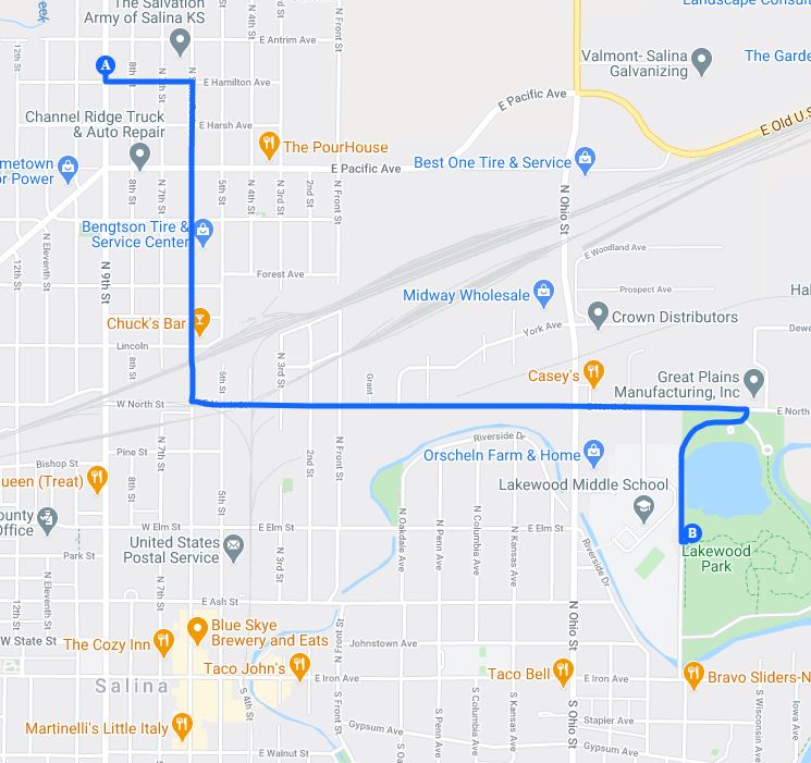 Downtown is the heart of Salina, Kansas. Ride from KWU to Downtown via Santa Fe Avenue and enjoy this bustling area.