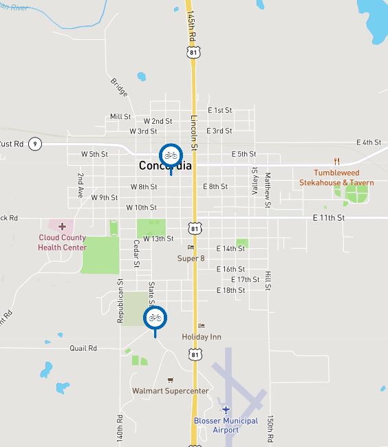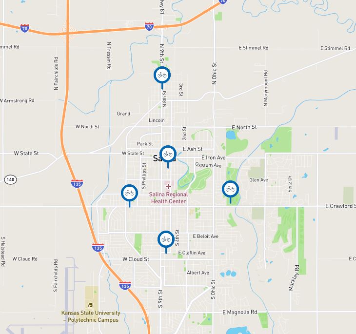 KANcycle, bike sharing for rural Kansas, currently serves 10 communities in Kansas.