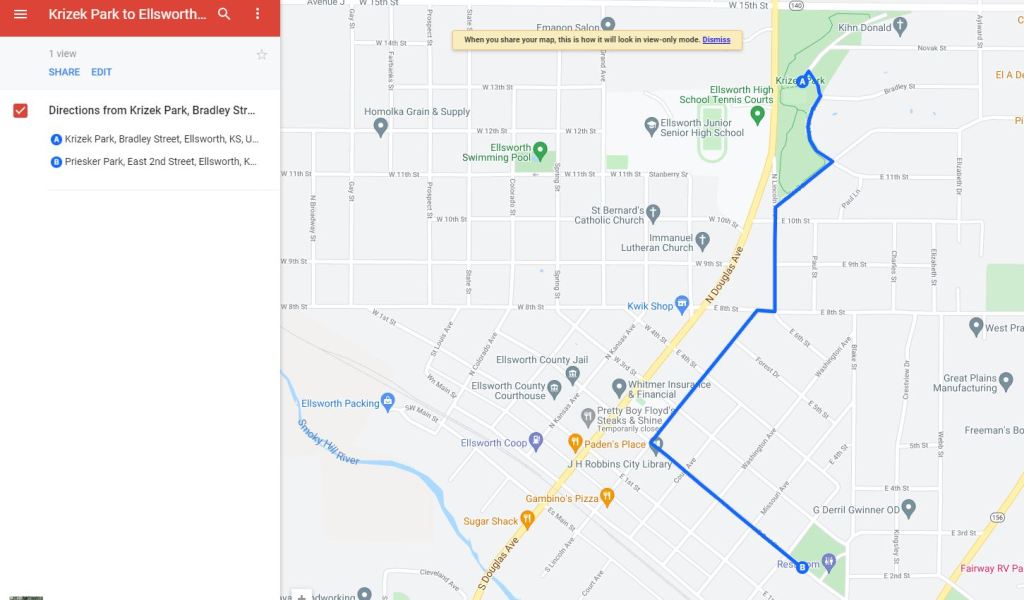 After playing a round of disc golf in Krizek Park, take the bikes down to the Ellsowrth Splash Pad in Preisker Park to cool off. Just lock the bike to any secure object once you stop or any bike rack within walking distance. Just lock the bike to any secure object once you stop or any bike rack within walking distance.