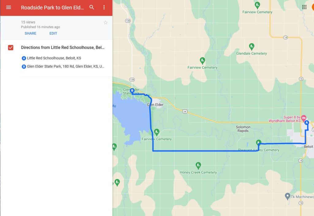 Glen Elder State Park provides several miles of hiking and biking trails. The trails, leading throughout the entire Park area, are generally grass-covered, are mowed, and maintained; they are generously wide and easy to navigate. Users will encounter ongoing views of the lake and surrounding park area and a host of wildlife including rabbits, numerous bird species, and, in the warmer months, a multitude of butterflies. Just lock the bike to any secure object once you stop or any bike rack within walking distance. Just lock the bike to any secure object once you stop or any bike rack within walking distance.